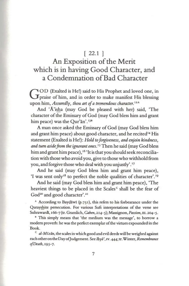 The spiritual life in Islam begins with riyadat al-nafs, the inner warfare against the ego. Distracted and polluted by worldliness, the lower self has a tendency to drag the human creature down into arrogance and vice. Only by a powerful effort of will can the sincere worshiper attain that purity of soul which enables him to attain to God's proximity. This translation of two sections from "The Revival of the Religious Sciences" (Ihya' 'Ulum al-Din) details the sophisticated spiritual techniques adopted by classical Islam.