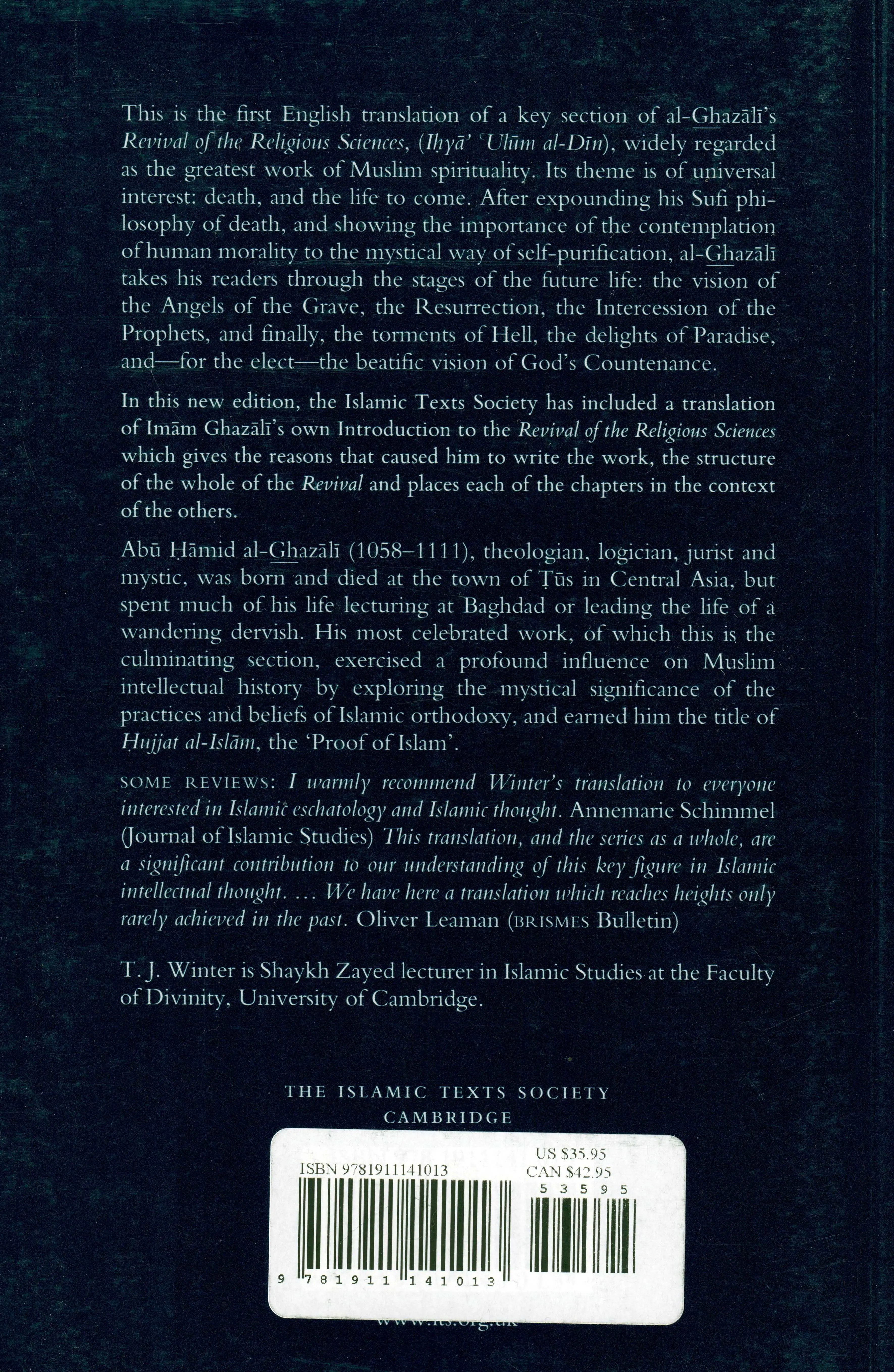 This is the first English translation of the last chapter of Al-Ghazali’s Revival of the Religious Sciences (Ihya’ ‘Ulum al-Din), widely regarded as the greatest work of Muslim spirituality. After expounding his Sufi philosophy of death and showing the importance of the contemplation of human mortality to the mystical way of self-purification, Ghazali takes his readers through the stages of the future life: the vision of the Angels of the Grave, the Resurrection, the Intercession of the Prophet, and finally, the torments of Hell, the delights of Paradise and - for the elect - the beatific vision of God’s Countenance.