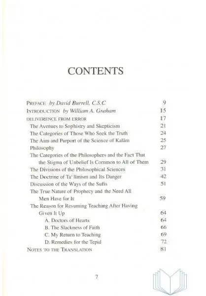 The present volume contains a translation of Ghazali's autobiography, The Deliverance from Error, one of the most remarkable personal documents to have come down to us from Islamic civilization.