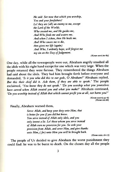 Nearly four thousand years ago, in the Sumerian town of Ur in the valley of the river Euphrates, lived a young man named Abraham. The people of Ur had once worshipped Allah but as time passed they forgot the true religion and started praying to idols, statues made of wood or clay and sometimes even of precious stones.
