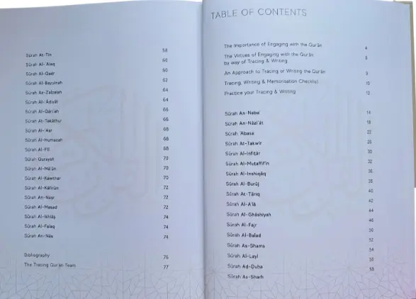 Anyone with the enthusiasm to pick up a pen will be able to unearth the inner workings of the Quran and its deeper treasures. Through tracing the verses, they will gain the tools to appreciate the Qur'an and its teachings in a lasting personal way.