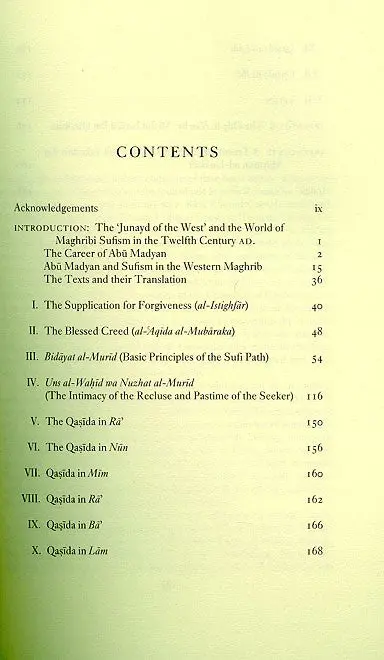 This is the first English translation of works attributed to Abu Madyan, a seminal figure of Sufism in Muslim Spain and North Africa. The Arabic text accompanying the English translation also represents the first scholarly edition of these works in the original language. The variety of Abu Madyan’s oeuvre, which includes doctrinal treatises, aphorisms, and poetical works in the ode, qasida, style, provides a unique opportunity for students of Arabic and Sufism, as well as the interested layman, to experience several of the most important genres of religious writing in the Islamic Middle Period. The Arabic texts have been extensively vocalised in order to aid the student. The work as a whole is well-suited for use as a reader for advanced level classes in the Arabic language. In addition, notes have been provided in the English translation.